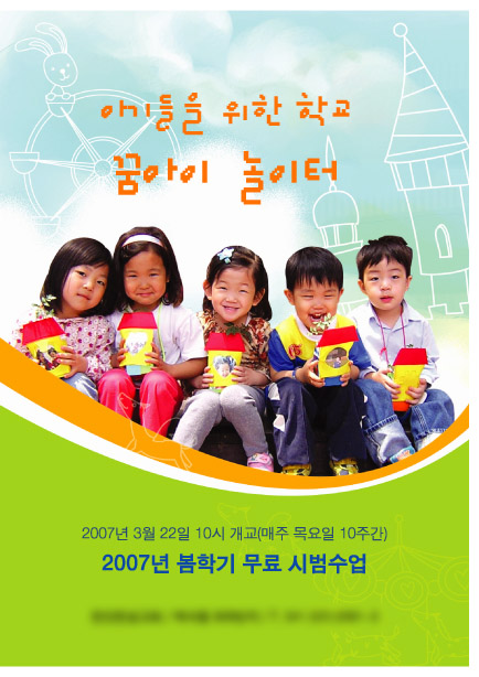 화사하네요^^ 근데..뒤에 하늘색배경에 뭔가 더 첨가하거나..색상의 그라데이션이라도..했으면 좋지 않았을까하는 개인적생각이 스칩니당~~
